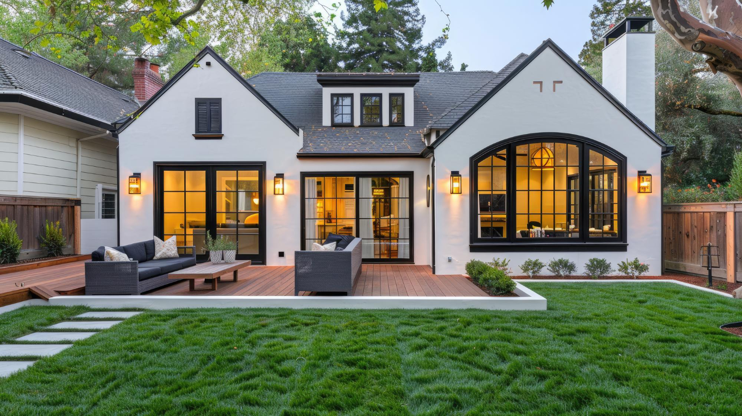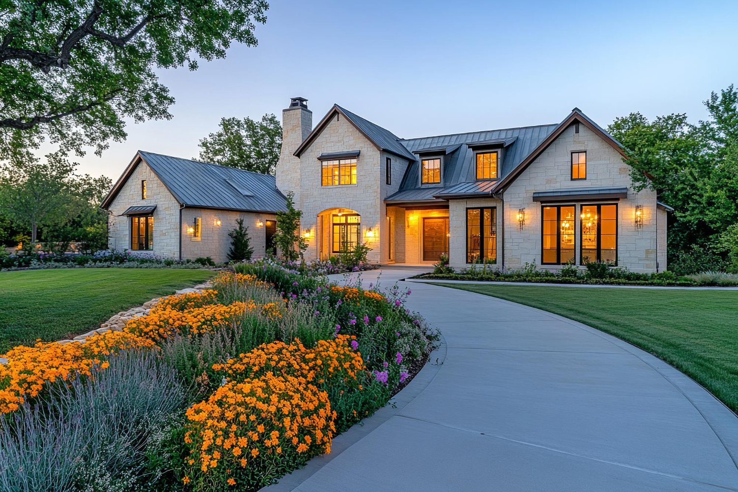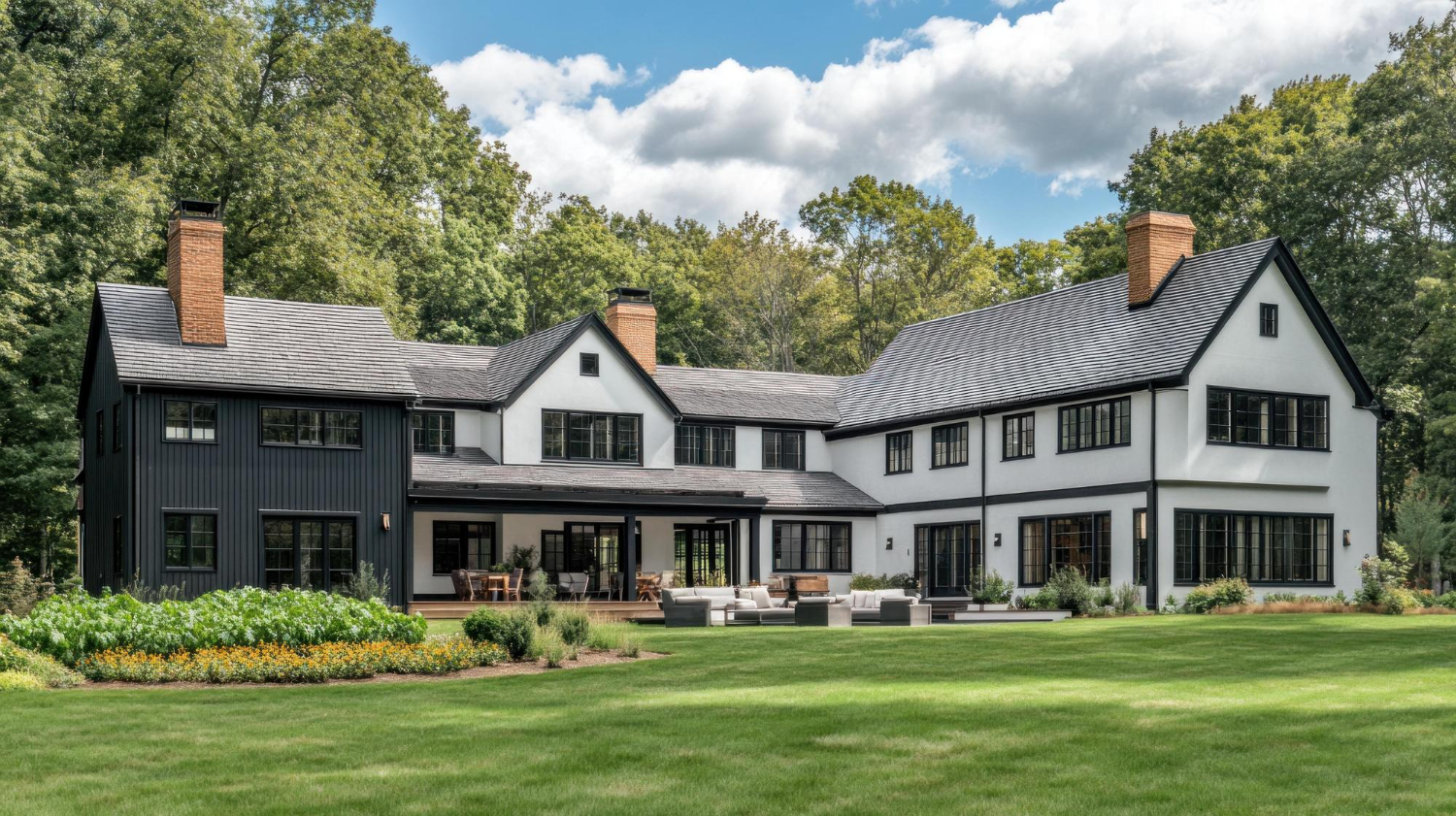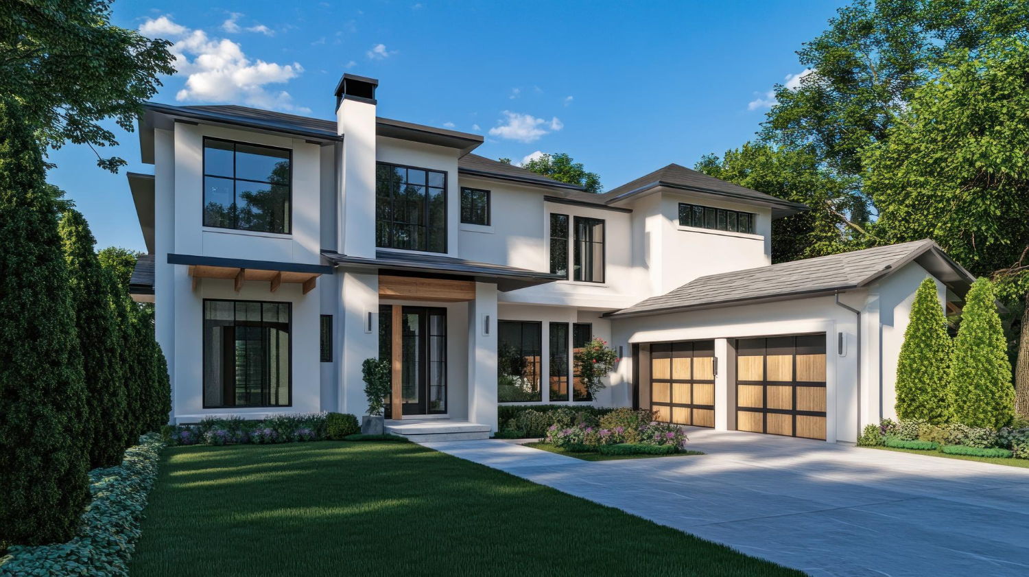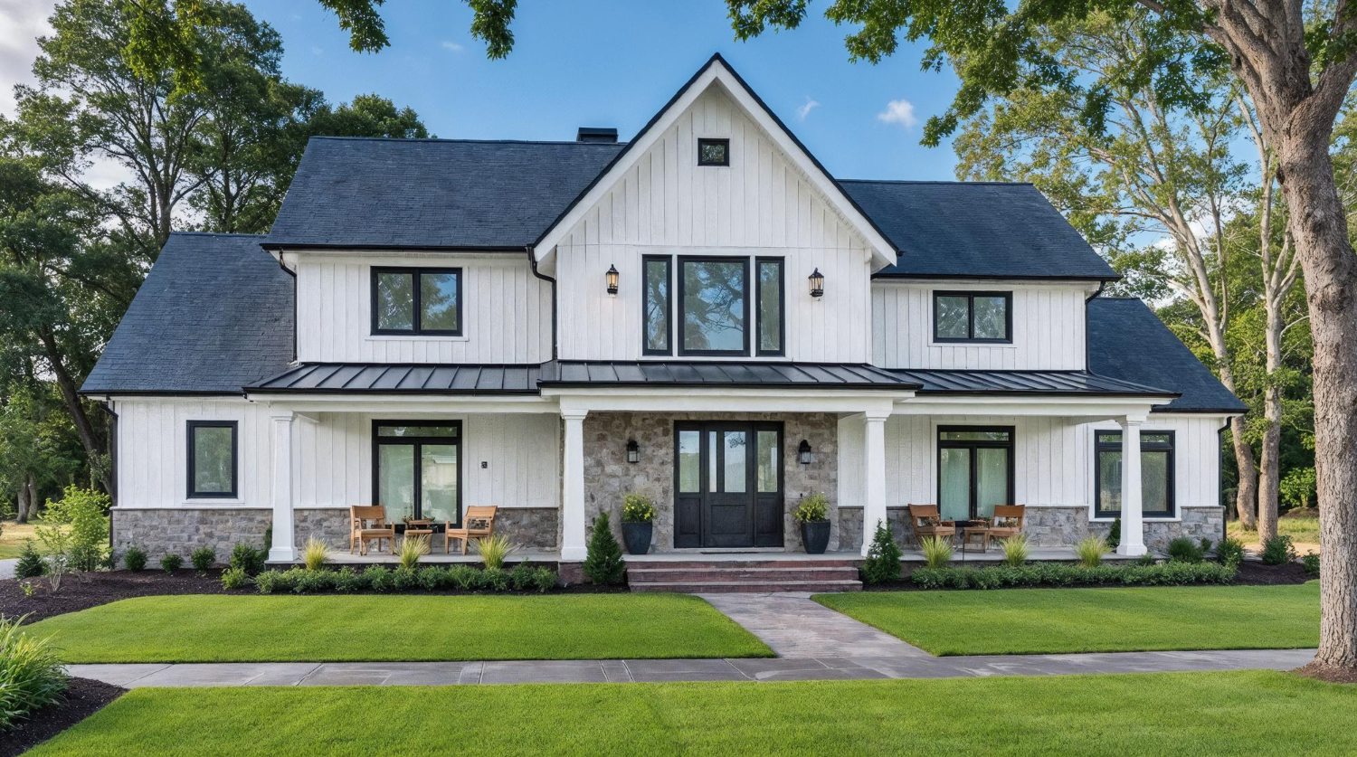 Modern Homestead is for clients who want a home that feels like it belongs — rooted in traditional form, but built with the clean lines and considered detailing of contemporary construction. The defining features of this direction are light exterior palettes, white stucco or board and batten, paired with black window framing that sharpens the elevation without losing warmth. Pitched rooflines, covered porches, and familiar massing give the home a sense of permanence and approachability that more contemporary directions don't always offer.